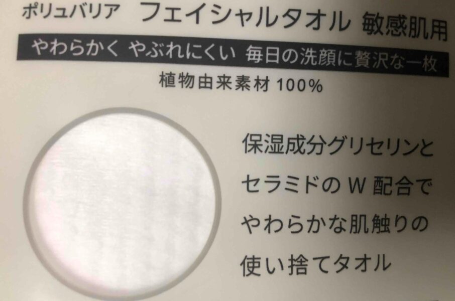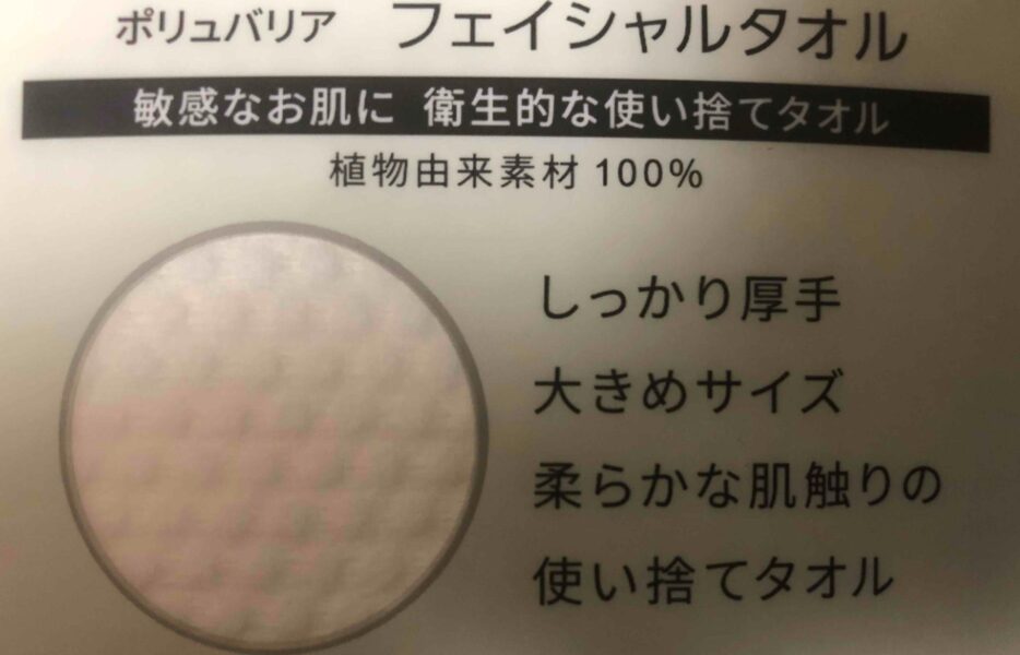 | ポリュバリア フェイシャルタオル(通常) | 65枚 | 縦22cm × 横20cm | ややしっかりめ | 敏感肌用よりも厚手、コスパが良い |