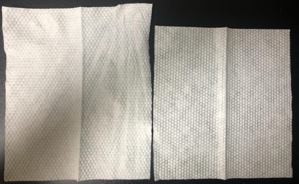 また、ペーパータオルと比べても違いがあります。ペーパータオルは吸水力が強いものの、紙が硬く、肌に擦れる感覚があります。フェイシャルタオルはポリプロピレンやポリエステル素材の不織布なので、柔らかく、顔を押さえるだけで水分を吸い取る点が魅力です。