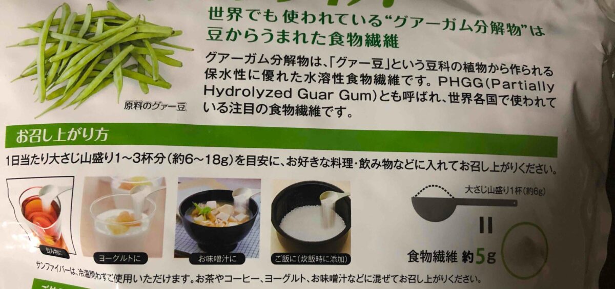 サンファイバーは、**グアーガム分解物(PHGG)**という水溶性食物繊維が主成分です。天然のグアー豆から抽出された食物繊維を発酵・分解しており、水に溶けやすく、ほぼ無味・無臭。そのまま水に混ぜても味が変わらず、コーヒーやプロテイン、スムージーにも自然に溶けるのが特徴です。